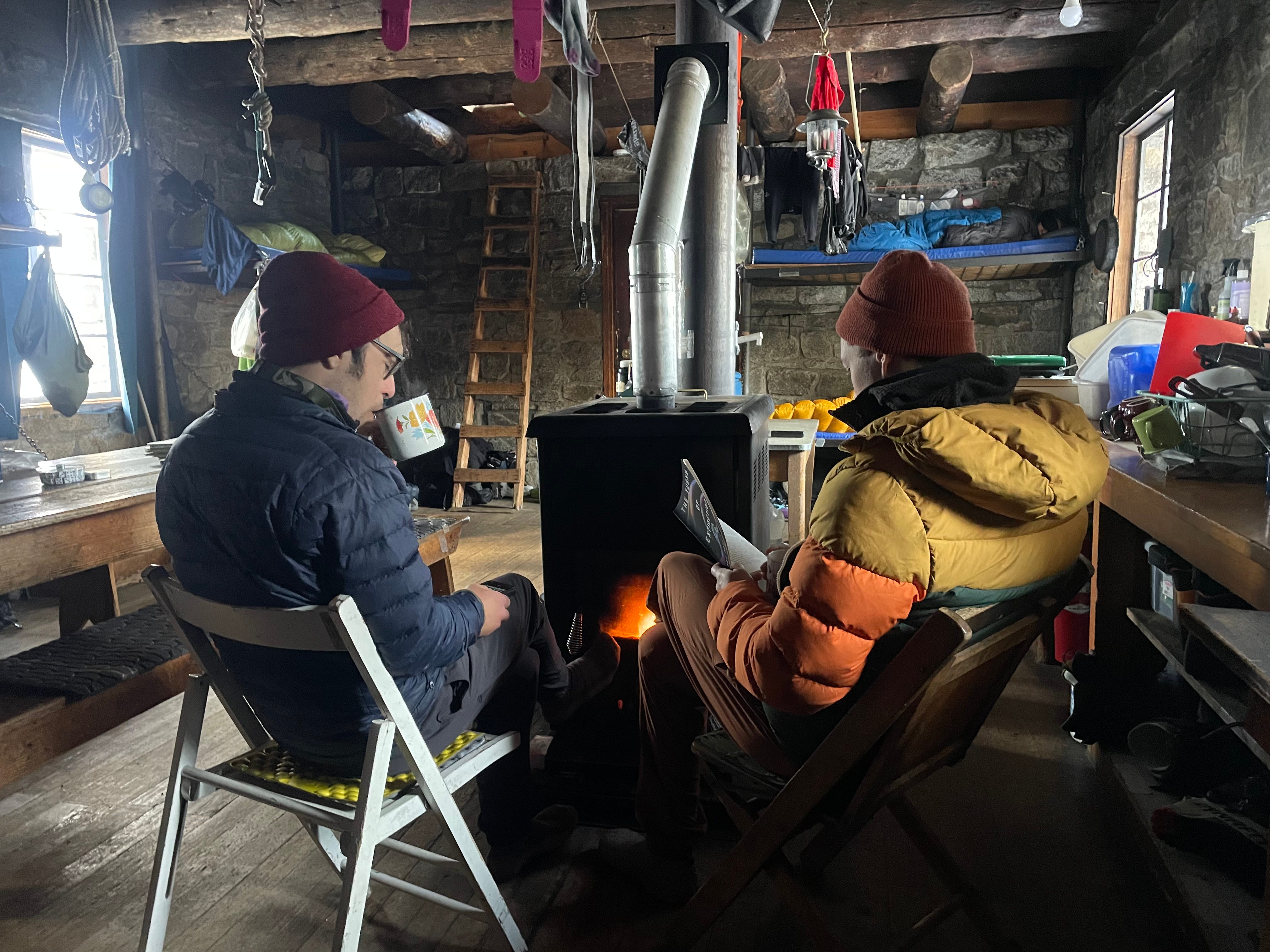 The hut has log books going back to the 60’s with stories of adventures and close calls. In one particularly memorable account a group of skiers were lost in whiteout conditions and had to huddle in a constructed snow fort for two nights before making it back out to the visitor’s center. In another, the snowpack was so high the group was worried about the pressure on the roof and tried to trigger a ‘rooflanche.’ Remarkably, it seems the closer the call, the more likely the group is to return the following year, recounting their narrow misses with some combination of reverence and glee.