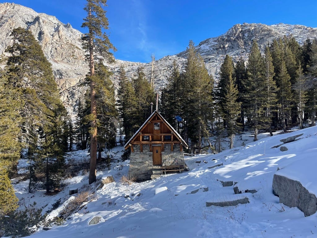 Tucked in the corner is a small library, filled with books about the High Sierras. At the recommendation of Lacey the hutkeeper, I crack open High Odyssey by Gene Rose. It recounts the solo expedition of Orland Bartholomew, who from 1928 to 1929 undertook the first recorded winter traverse of the Sierras and of Mt. Whitney, spending 40+ nights above 10,000 feet. Rose writes that Bartholomew was a “mountain greyhound who could cover the rough distances of the high country faster than a horse.”